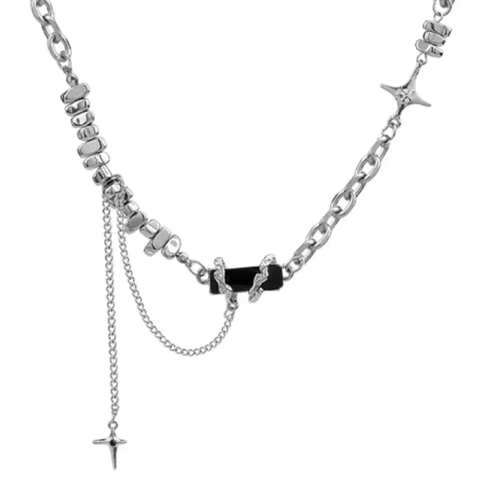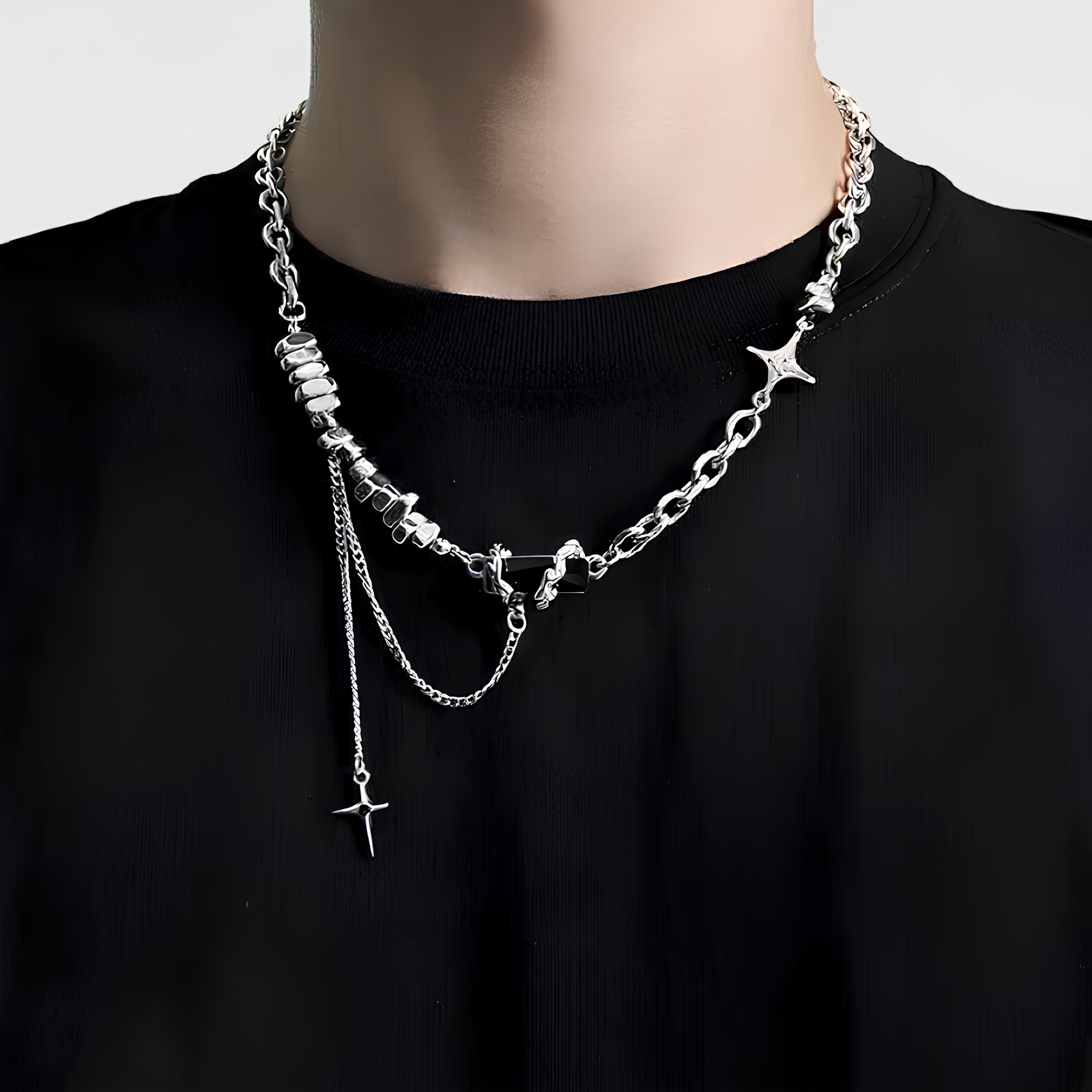 A riot of jagged links and untamed edges, this piece was built for those who refuse to blend in. Every link is a sharp statement — uneven, unapologetic, and dripping with raw energy. It doesn’t just sit on your neck; it challenges everything around it. Wear it as armor, or as a warning.