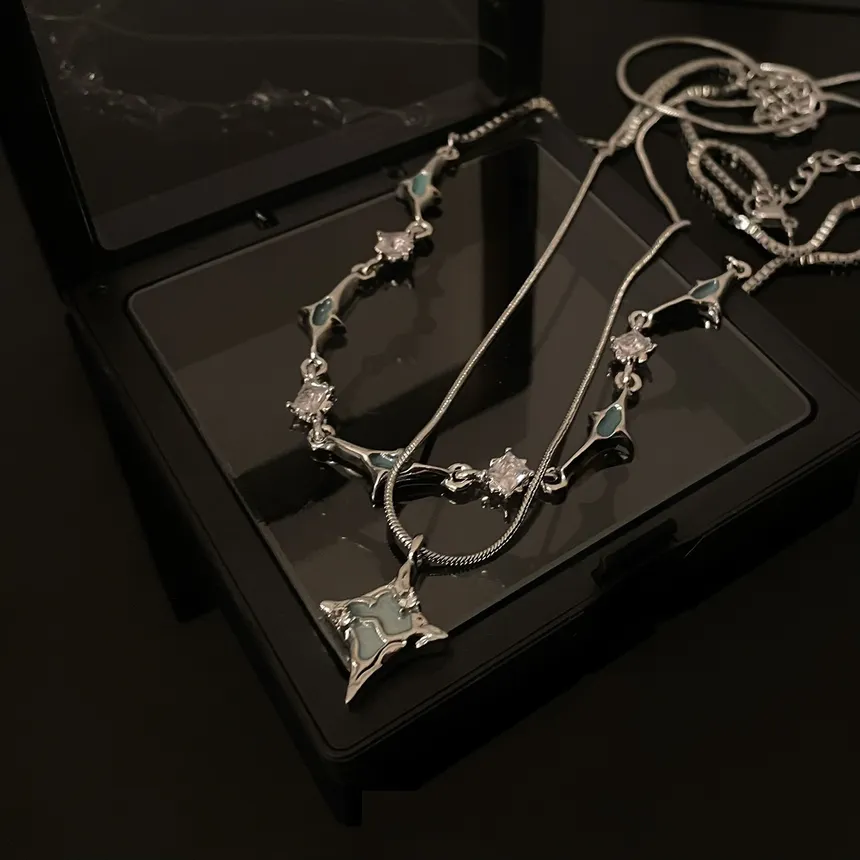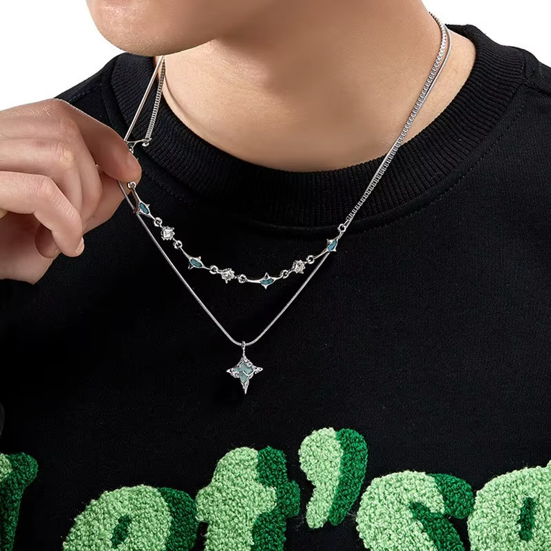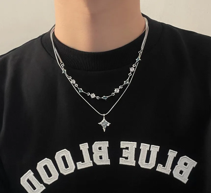 Simplicity meets subtle flair. A sleek rope-style chain holds a striking blue star pendant, while a thinner silver chain above adds a touch of layered interest with silver and blue accents. Clean, minimal, and effortlessly cool — it’s the understated statement piece that completes any look.